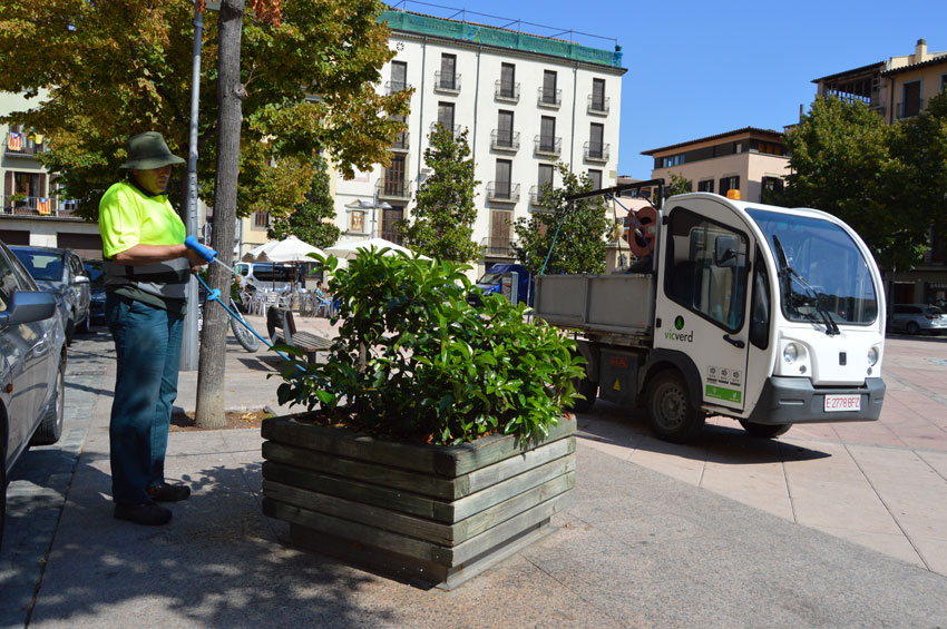 A la ciutat de Vic hi ha 345 jardineres, a més d’altres parterres de plantes de flor i arbustives, o arbres que no són accessibles per regar-los amb la cisterna i el tractor.